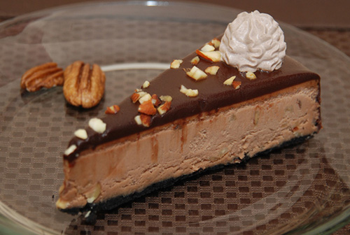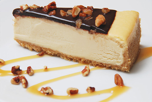 A perfect blend of creamy caramel and cheesecake. Topped with chocolate fudge and toasted pecans. Sinfully rich!