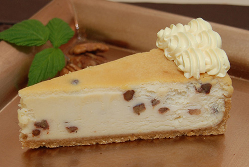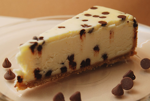 A creamy, smooth cheesecake deliciously flavored with Irish Cream and sprinkled with chocolate chips. What a combination.