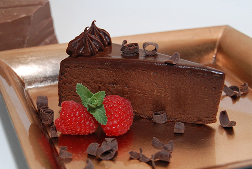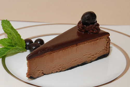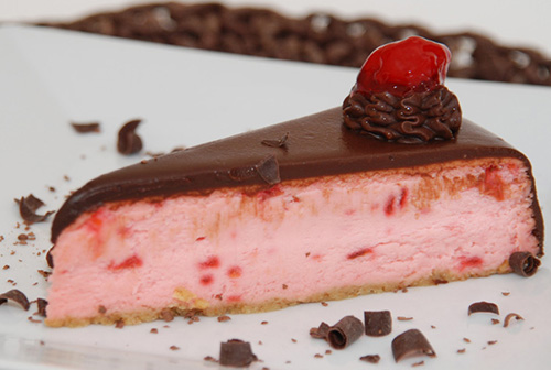 Better than the famous candy. Creamy cherry flavored cheesecake covered with our special chocolate ganache. Beautiful to look at and wonderful to eat.
