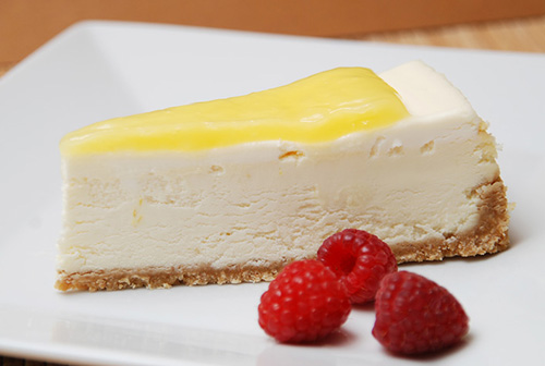 Better than Grandma’s Lemon Pie. Creamy Cheesecake made with fresh squeezed lemon juice and lemon zest. Covered with a special sour cream and topped with our homemade lemon sauce. A great light cheesecake!