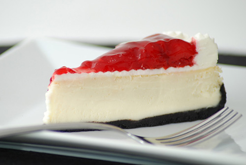 One of our best selling flavors. Traditional cheesecake covered with cream cheese, white chocolate frosting, and tart red cherries. Beautiful and delicious!